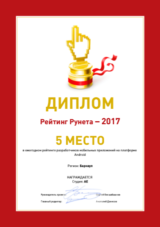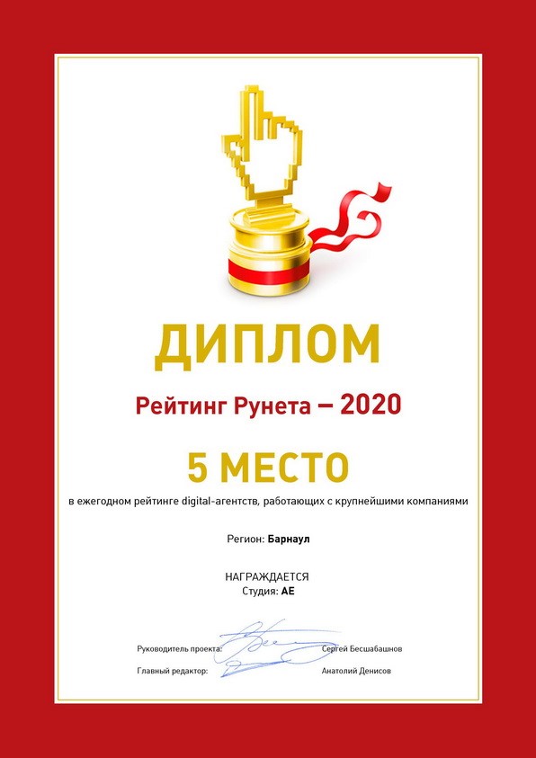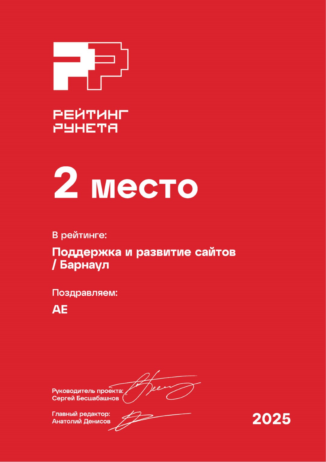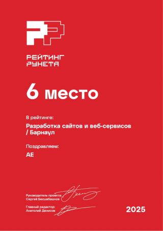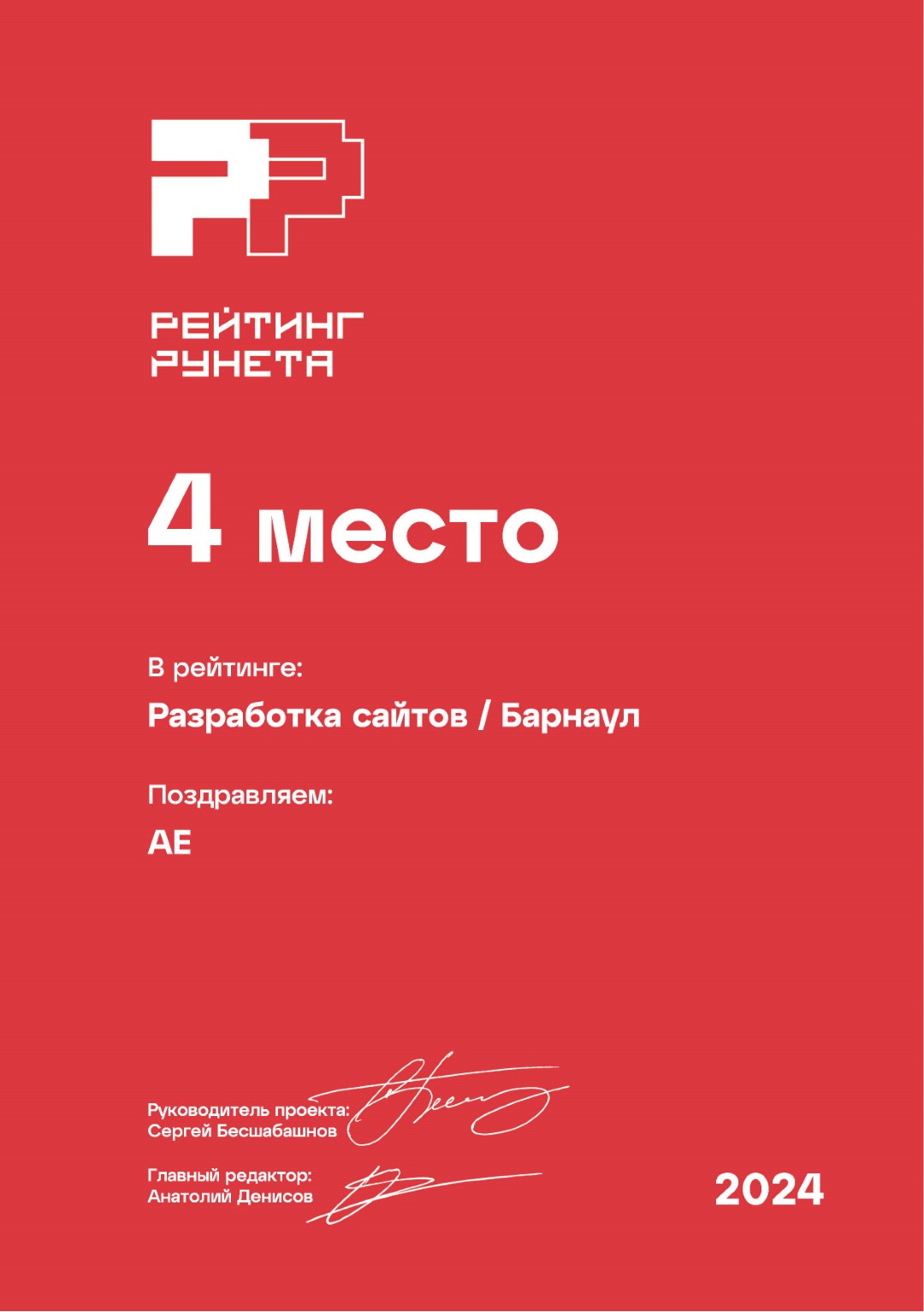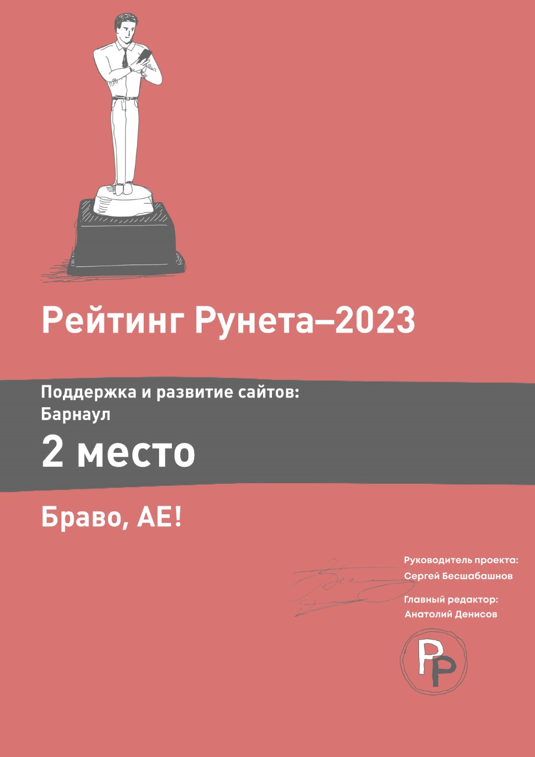Ежегодный рейтинг рунета из года в год показывает нашу компанию в топ 10 по Барнаулу