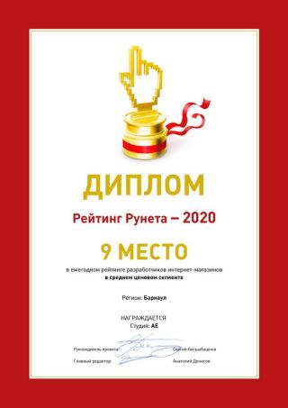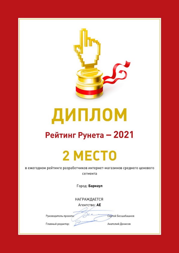 Рейтинг Рунета 2021 - Ежегодный рейтинг разработчиков интернет-магазинов среднего ценового сегмента: Барнаул