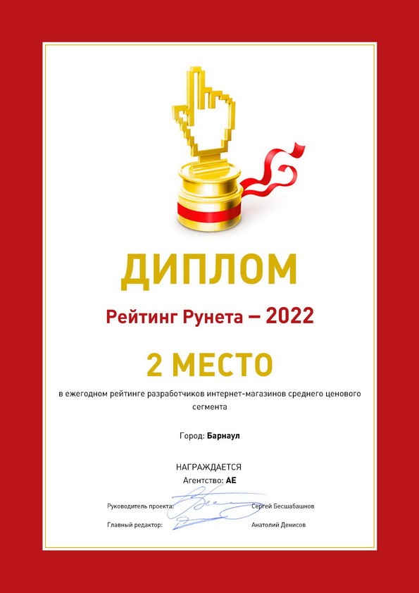 Рейтинг Рунета 2022 - Ежегодный рейтинг разработчиков интернет-магазинов среднего ценового сегмента: Барнаул
