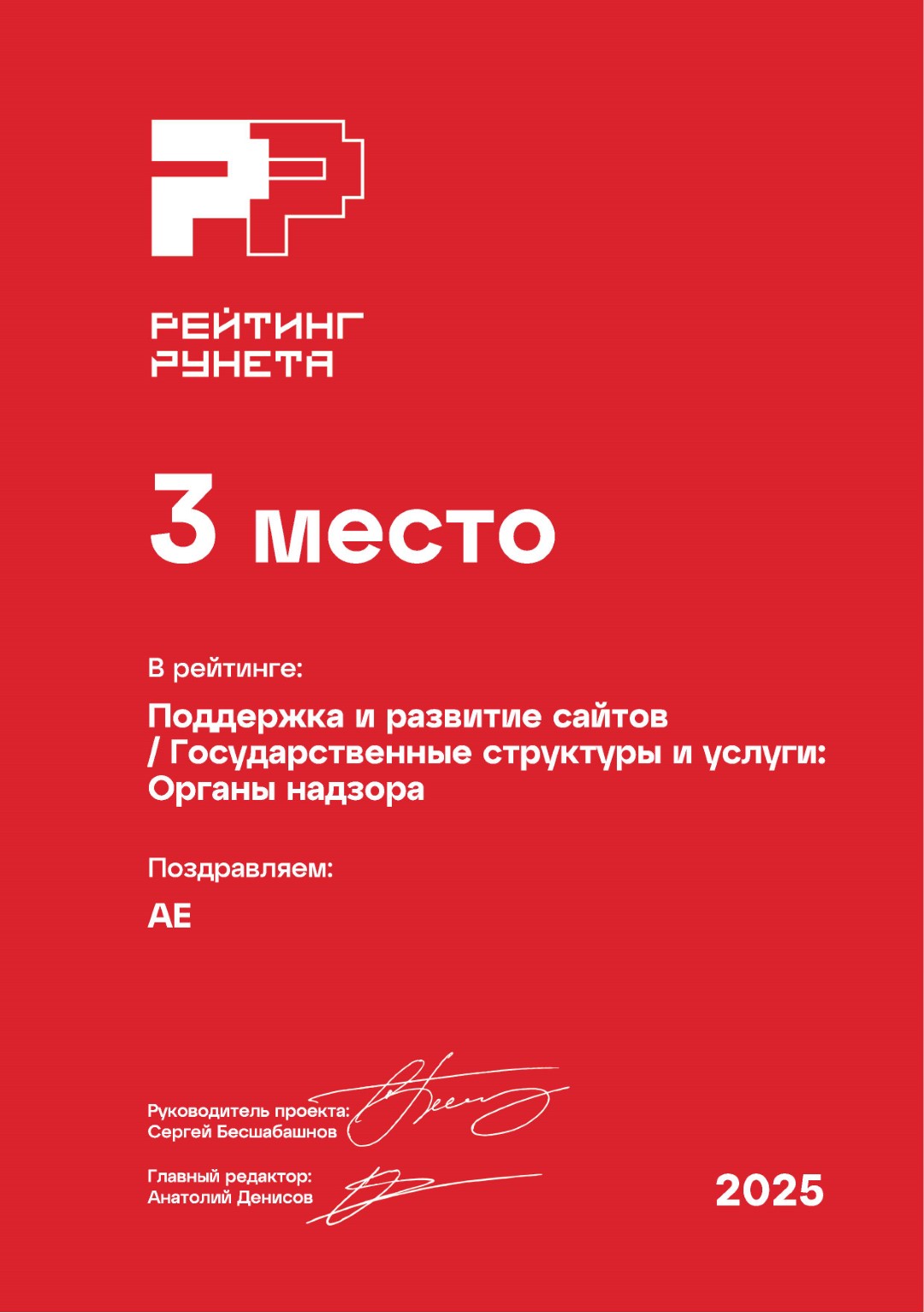 Рейтинг Рунета 2025 - Поддержка и развитие сайтов / Государственные структуры и услуги: Органы надзора