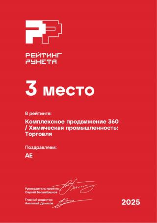 Рейтинг Рунета 2025 - Комплексное продвижение 360 / Химическая промышленность: Торговля