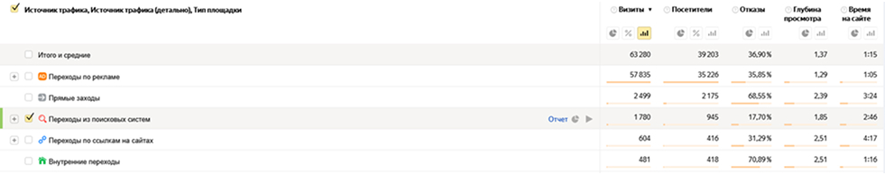 Поисковое продвижение обеспечивает стабильный качественный трафик с низкими, по сравнению с другими источниками, отказами.