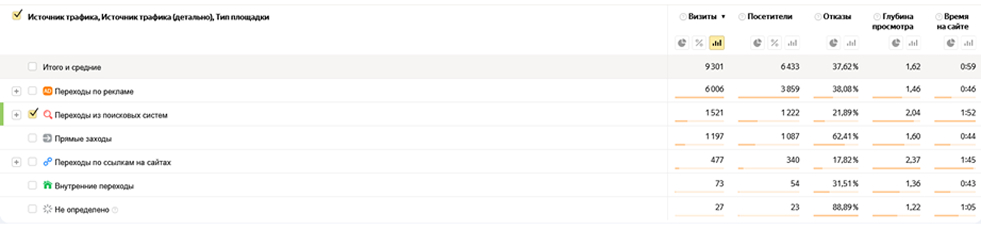 Качество трафика с поиска по сравнению с другими источниками