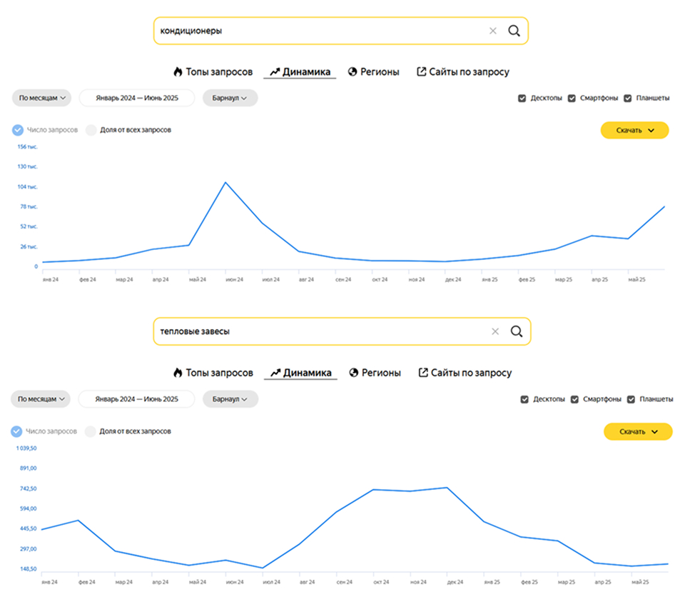 Спрос имеет сезонные особенности – всплески и снижения по конкретным направлениям.