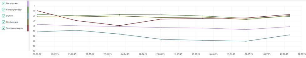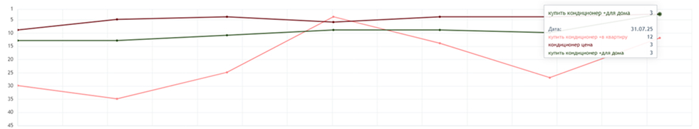 Примеры динамики средней позиции в поиске по базовым категорийным запросам.