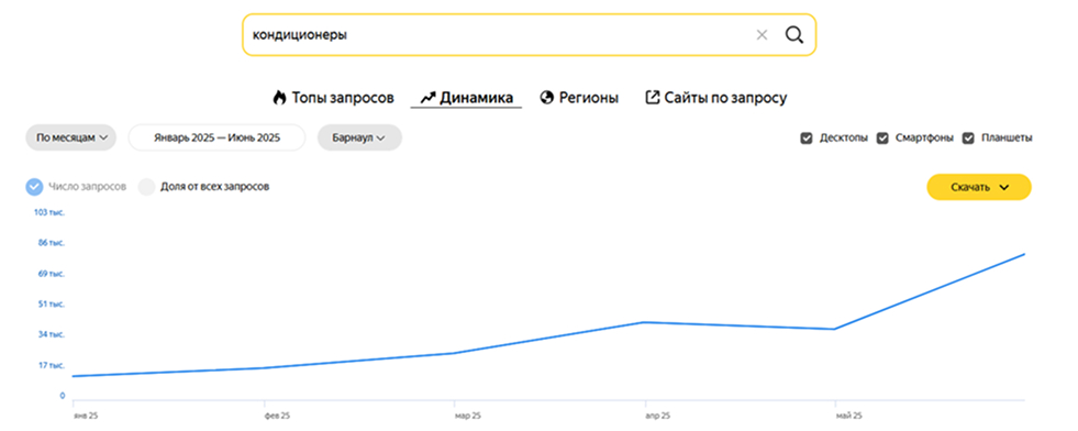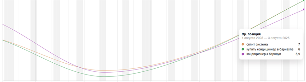Тематика климатического оборудования и конкретный сайт имеют высокий потенциал для SEO и ещё много возможностей для расширения семантического ядра, повышения позиций и получения большего трафика на разных этапах воронки продаж.