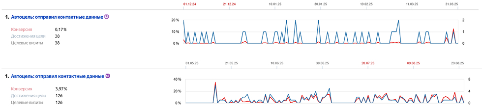 - Позднее добавлены показатели заявок и звонков, что позволило оптимизировать кампании именно под результат, а не только под клики.