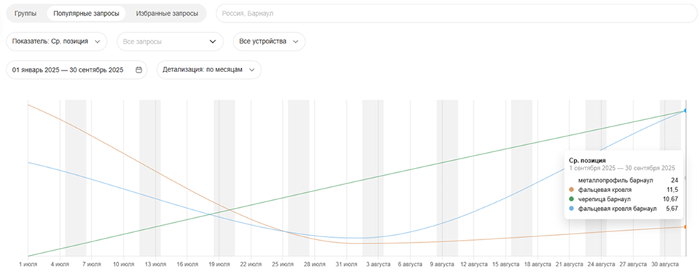 - Продвижение по общим ключевым фразам вида «профнастил», «металлочерепица»