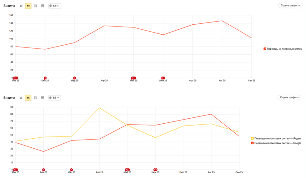 - Рост целевого трафика из поисковых систем