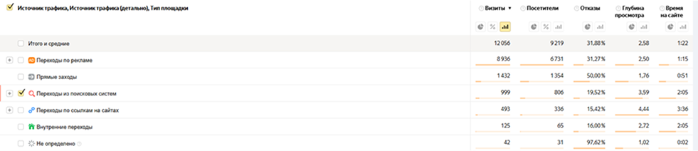 Качество трафика с поиска по сравнению с другими источниками