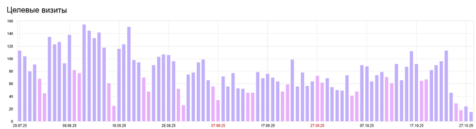 До запуска рекламы: сайт не приводил измеримых заявок/заказов; систем аналитики не было (не стояла Метрика, цели не настроены, UTM-метки не использовались), из-за чего было невозможно оценить путь пользователя и эффективность источников.