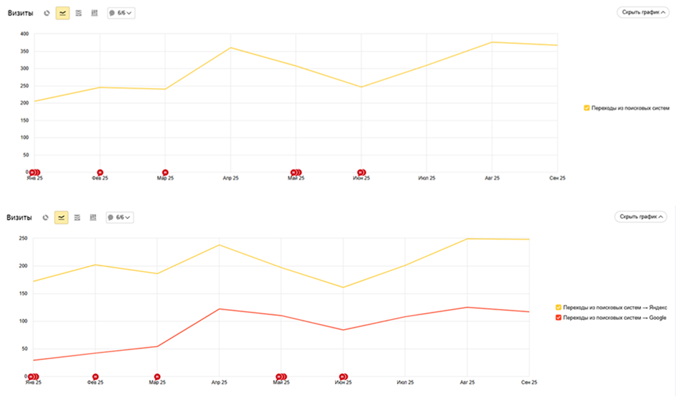 - Рост целевого трафика из поисковых систем
