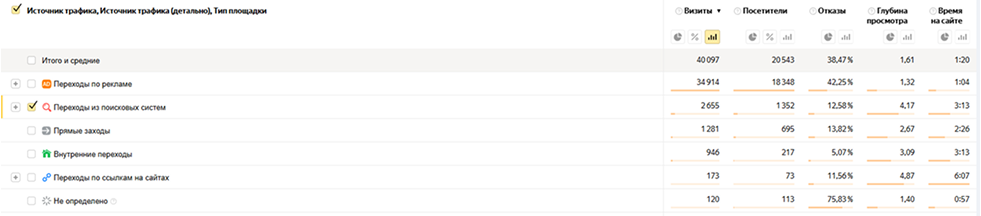 Качество трафика с поиска по сравнению с другими источниками